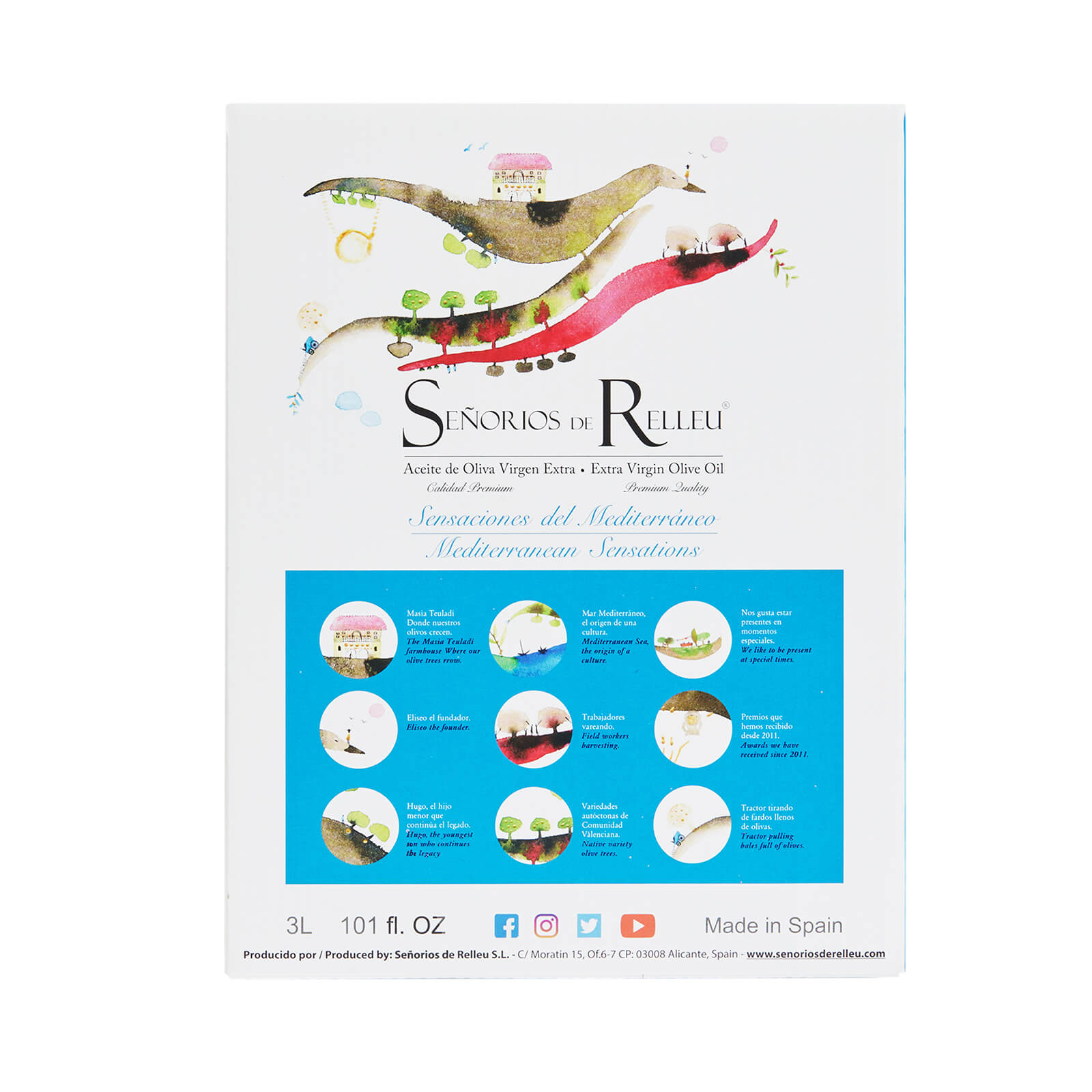 Das native Olivenöl extra Delicate Coupage, Bag In Box 3 L, von Señoríos de Relleu® ist eine Coupage der besten nativen Olivenöle extra aus fünf einheimischen Sorten der Region und Arbequina. Seine Fruchtigkeit steht im perfekten Kontrast zu Bitterkeit und Schärfe und macht es zu einem sehr ausgewogenen Öl.