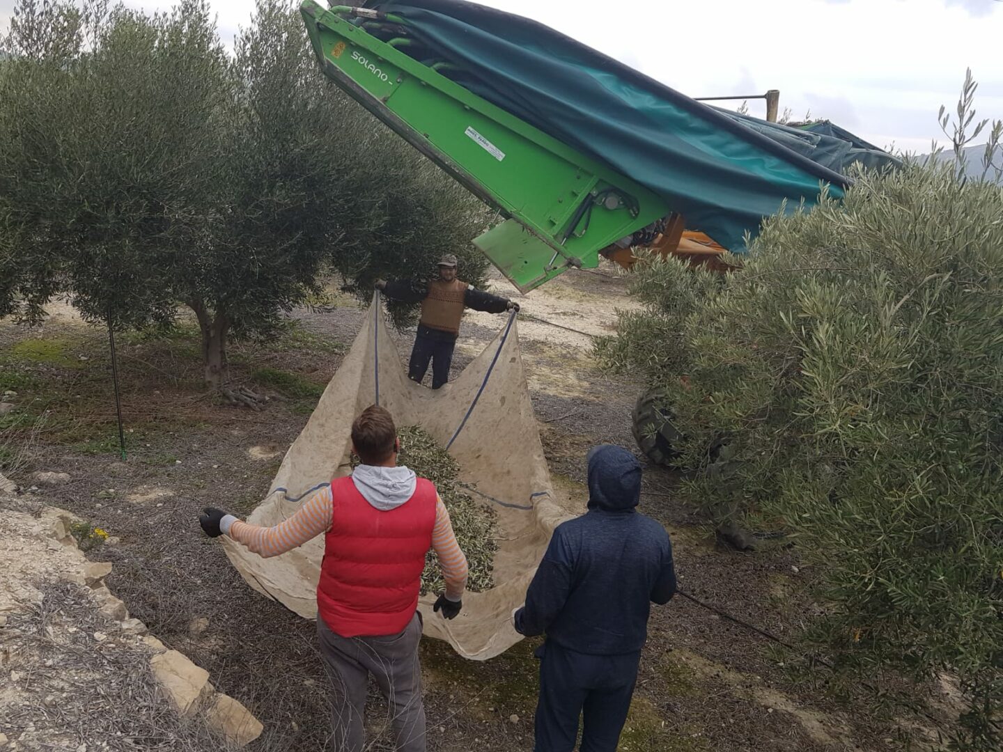 On Monday, October 15th, 2018 we started the harvest, the olives are green but on the verge of going to ripe, it is what we call “MOMENTO ENVERO“.