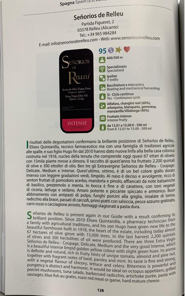This prestigious guide selects the best 500 companies in the world in the Extra Virgin Olive Oil sector and our mill is in the TOP 100 and what is more important, throughout our history we remain among the best producers of Virgin Olive Oil. extra of the world