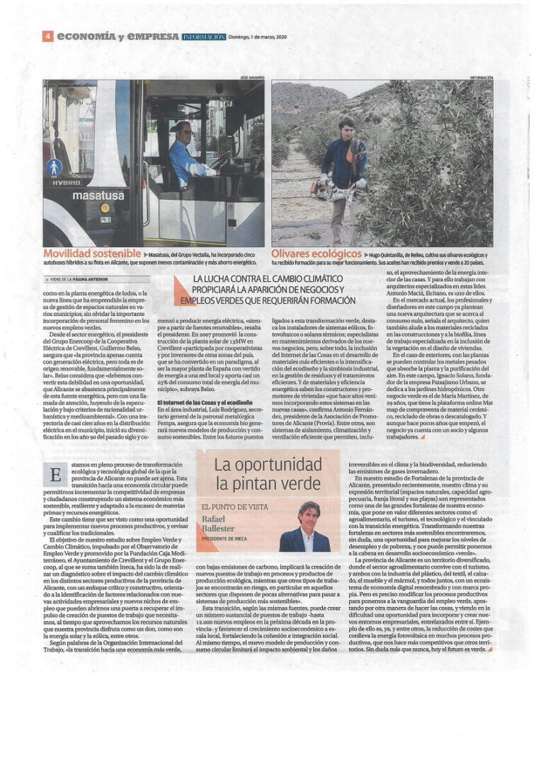 Yesterday, March 1, we appeared in the supplement of the Diario Información about economy and business under the title “The professionals of the Green Economy”