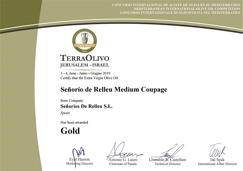 And within the contest, we have obtained a gold medal for our Mediun Coupage Extra Virgin Olive Oil, among more than 450 samples submitted, from more than 20 countries.