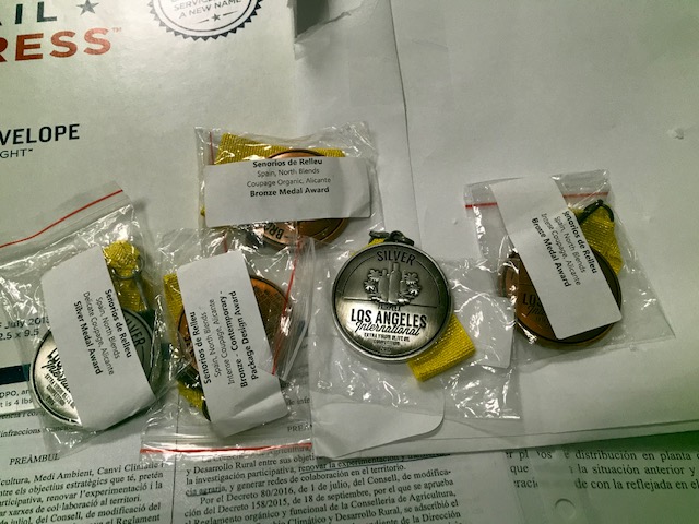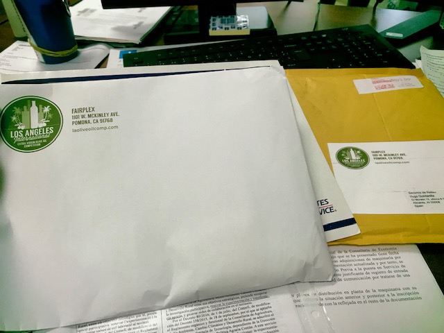 Mediante un jurada entrenado, se realizan catas a ciegas de los distintos Aceites de Oliva Virgen Extra y se puntúan. Hace unas semanas recibimos este sobre directo de Los Ángeles con nuestras medallas, premios y certificados.