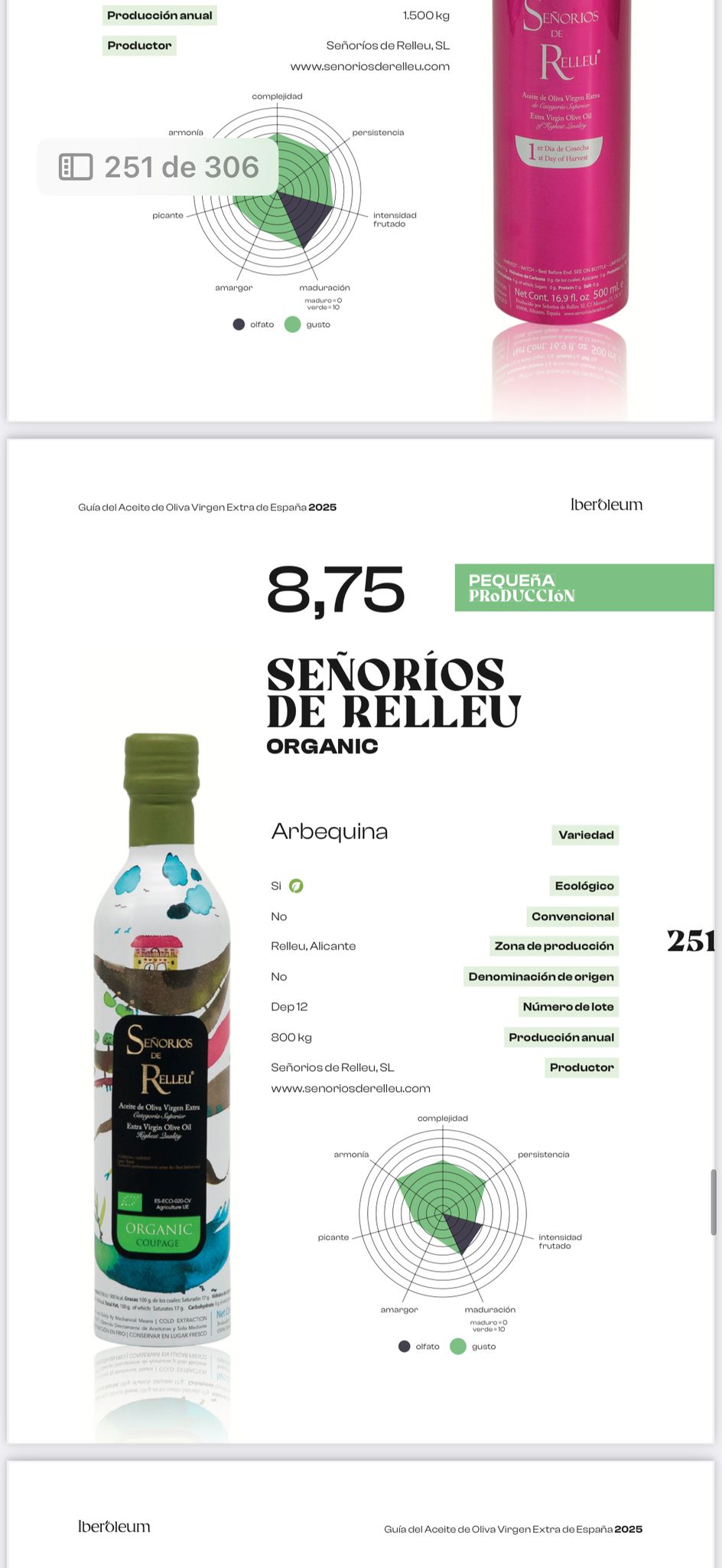 En Señoríos de Relleu estamos de enhorabuena. La prestigiosa Guía Iberoleum 2025, referente nacional en la selección de los mejores aceites de oliva virgen extra de España, nos ha reconocido con tres importantes galardones que reafirman nuestro compromiso con la calidad, la sostenibilidad y el diseño de vanguardia.